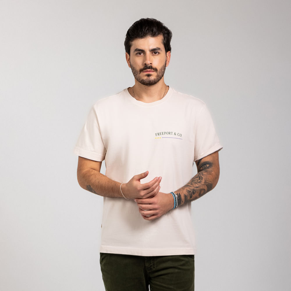 Camiseta manga corta, con estampados localizados en frente y posterior, Esta CamisetaLa silueta, el material y la gama de colores de esta camiseta la hacen perfecta para tus looks más casuales. Presenta estampados localizados en frente y posterior, los cuales están inspirados en los torneos de sailing que se refiere a una competencia o evento deportivo centrado en la navegación a vela, este deporte también es muy característico del pueblo de Freeport donde también se practica la pesca. Está hecha en tela 100% algodón teñida, con tacto suave y cuello en rib a tono con la prenda. Cuida tu prenda: lavar en frío o por debajo de 30 C para proteger el estampado y color de la prenda, utilizar detergente suave y sin blanqueador para cuidar los colores, secar al aire libre. El modelo mide 1.83 mts y está usando talla M.