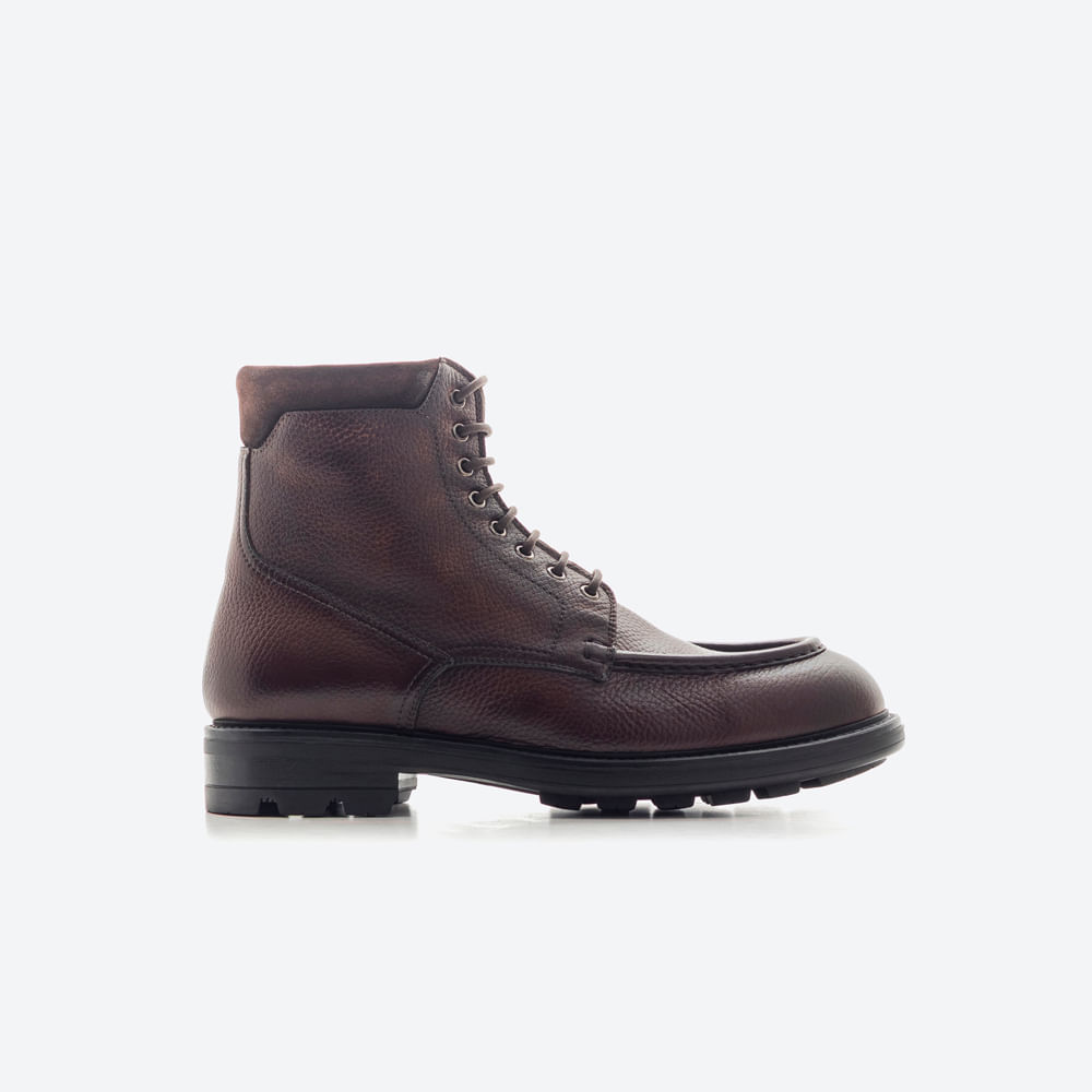 La bota Magnanni Army destaca por su carácter robusto y sofisticado, combinando un diseño de inspiración militar con un acabado refinado. Confeccionado en piel granulada de aspecto natural, presenta una silueta de caña media con cordones que aporta sujeción y presencia. La puntera tipo moc toe añade un toque distintivo y artesanal, mientras que la suela de goma con dibujo dentado mejora la tracción y la estabilidad en el uso diario. Es una propuesta versátil que funciona tanto con looks urbanos como con estilos más formales de temporada, manteniendo una estética sólida y bien definida.