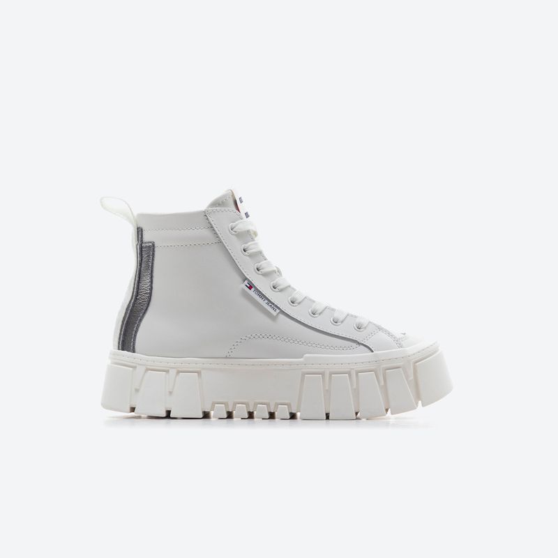 Estas zapatillas de cordones, confeccionadas en una mezcla de piel de alta calidad, se distinguen por su suela de plataforma gruesa, que les otorga un estilo moderno y cómodo. El interior de poliéster y la plantilla extraíble de poliuretano y caucho termoplástico ofrecen una pisada suave y confortable. La suela está equipada con tacos de caucho termoplástico vulcanizado, lo que proporciona una excelente tracción y durabilidad. Su diseño de corte alto, con punta redonda y cierre de cordones, asegura un ajuste firme y cómodo, mientras que la trabilla para calzar facilita el proceso de poner y quitar las zapatillas. El parche de Tommy en la lengüeta y los detalles distintivos de Tommy Jeans refuerzan el estilo único de la marca.