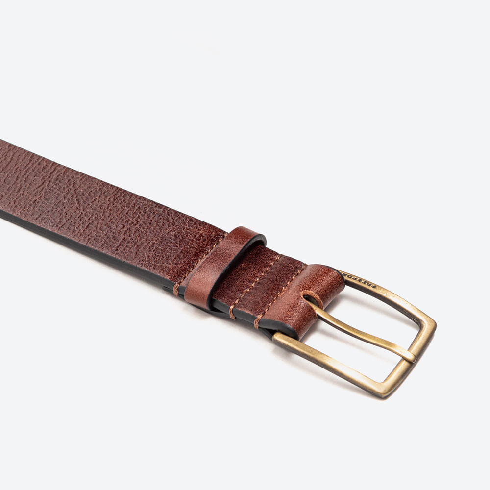 Agrega un toque de sofisticación a tu atuendo con este elegante cinturón de cuero. Diseñado pensando en la versatilidad y el estilo, este cinturón es la combinación perfecta de funcionalidad y moda. En su construcción presenta: cuero 100% emblocado sin costuras alrededor, que le aporta limpieza al diseño. Su revés está desarrollado en cuero crupón, un cuero que no ha sido pasado por proceso de ablandado, por lo tanto es mucho más fuerte y menos flexible. Este cuero es esencial porque le aporta longevidad al cinturón. Su hebilla es de 35 mm personalizada con la marca Freeport asegurando autenticidad y calidad y con pasador para un mejor ajuste.