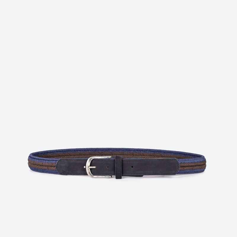 Este cinturón equilibra la estructura clásica con el confort moderno. Su cuerpo en trenzado de poliéster elástico está pensado para ceder sutilmente con el movimiento y adaptarse con naturalidad al uso diario, mientras el ajuste tradicional con perforaciones garantiza una sujeción firme y confiable. Las terminaciones en piel 100% definen la pieza con un acabado sólido y elegante. La puntera alargada se convierte en un detalle de diseño intencional que estiliza la silueta y aporta carácter visual. Con 35 mm de ancho, es un accesorio esencial que combina textura, durabilidad y versatilidad para looks casuales o más pulidos.