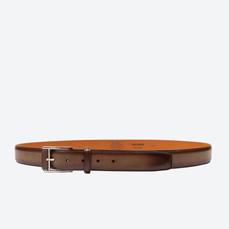 Esta correa de Magnanni está confeccionada en suave cuero de becerro, lo que le confiere una apariencia lujosa. Su hebilla presenta una barra cuadrada con un detalle de cuero que añade un toque de sofisticación. La anchura de la correa es de 35mm. Cada pieza está pintada a mano. El color negro clásico presenta tonos grises oscuros.