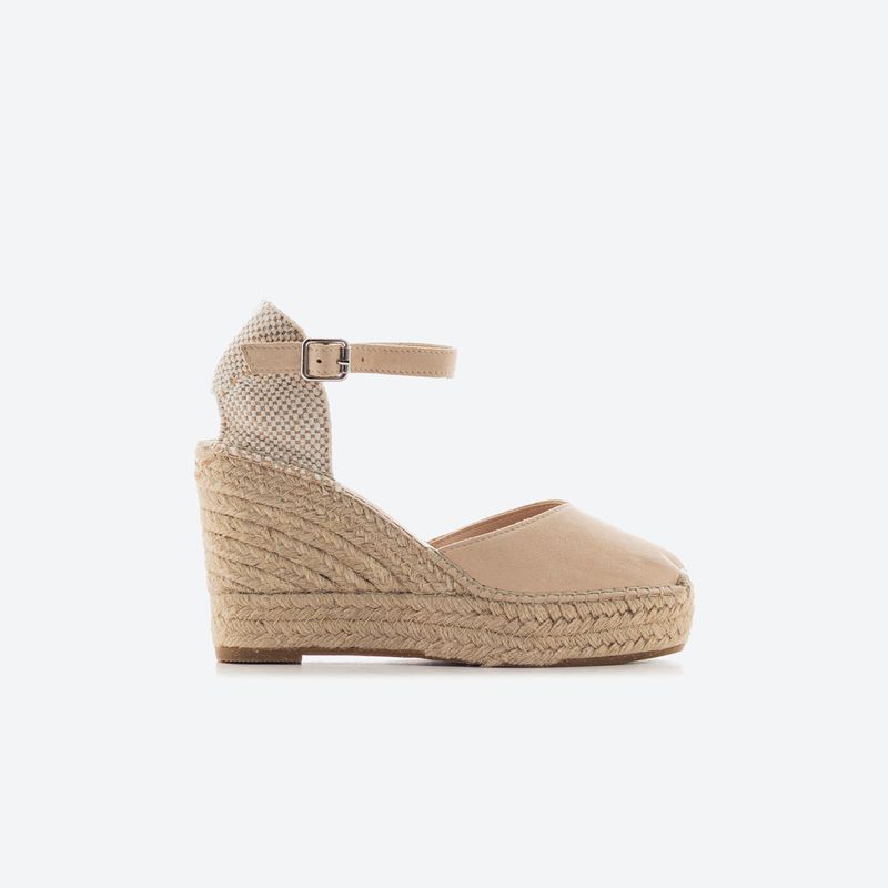 Sandalia de cuña artesanal con altura trasera de 10cm y plataforma delantera de 3cm, lo que proporciona una sensación de altura cómoda al caminar. Con puntera cerrada en cuero certificado por Leather Working Group, pulsera ajustable con hebilla libre de níquel y talón semi descubierto. Está cosida a mano con hilo 100% algodón, lleva una cuña interior de corcho recubierta en yute natural y una suela de goma reciclada con fibras naturales. Forro y plantilla de microfibra transpirable, antibacteriana y acolchada. Para conservar su estado, se recomienda limpiar con un paño suave y seco y evitar la exposición prolongada al sol o la humedad. Hecho en España.