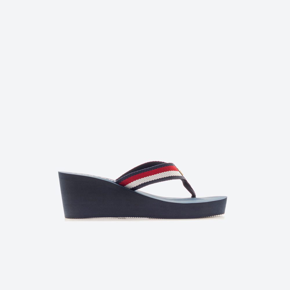 Esta sandalia de cuña de Tommy Hilfiger fusiona un diseño actual con una silueta estilizada pensada para el día a día. Su plataforma aporta altura con buena estabilidad, mientras que la suela de EVA garantiza una pisada ligera y agradable durante largas jornadas. La tira textil con rayas a contraste refuerza el carácter icónico de la marca y suma un acento visual que funciona muy bien con looks de verano. Confeccionada en una mezcla de poliuretano y poliéster, ofrece un ajuste práctico y cómodo, ideal tanto para planes urbanos como para escapadas relajadas. Un modelo que equilibra estética contemporánea y funcionalidad sin perder versatilidad.
