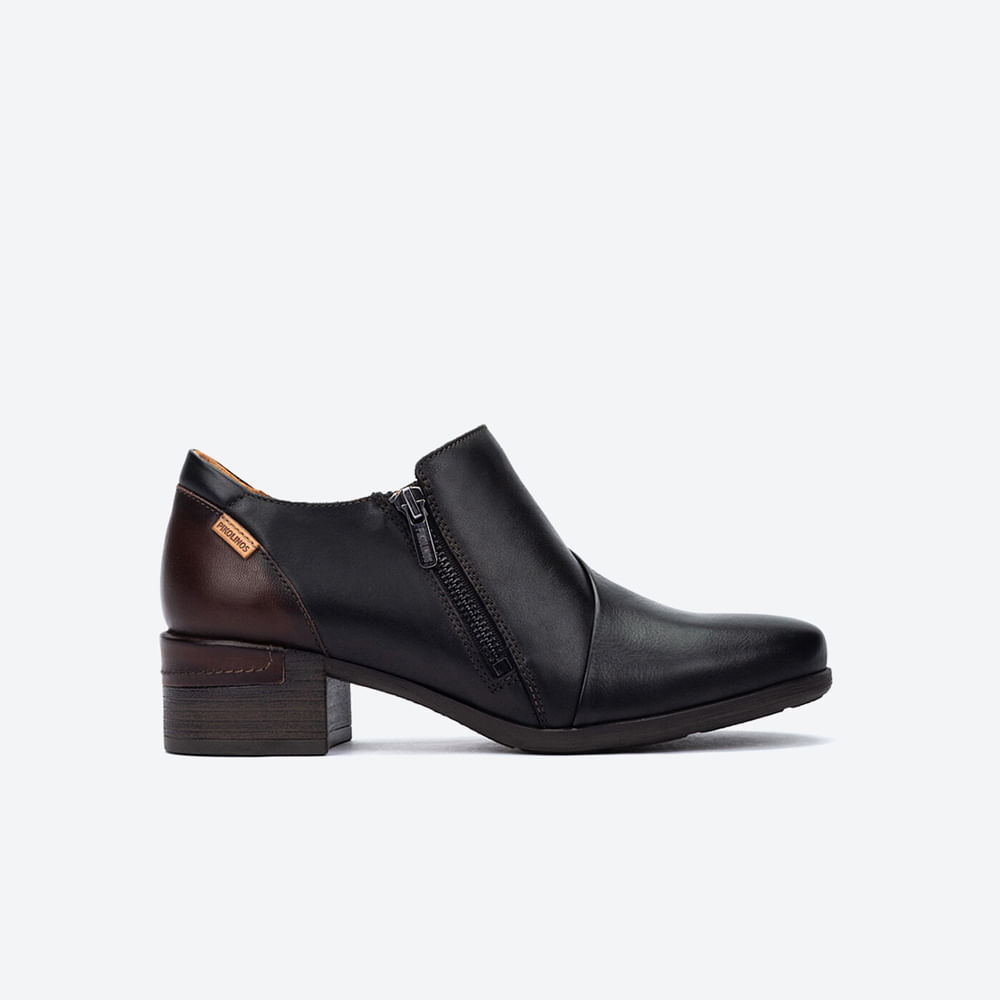 Los zapatos de tacón Málaga de Pikolinos son la combinación perfecta de elegancia y practicidad para el día a día. Elaborados en piel vacuno 100%, cuentan con un tacón bloque de 4 cm que aporta estabilidad y un extra de sofisticación a tus looks. Su práctico cierre de cremallera facilita el calce, mientras que la plantilla acolchada asegura confort en cada paso, convirtiéndolos en una opción ideal para largas jornadas. El interior combina piel porcina y textil, proporcionando suavidad y transpirabilidad, y la suela sintética aporta resistencia al uso diario. Un diseño versátil que realza desde un conjunto formal hasta un look más desenfadado. Además, este modelo respalda la fabricación responsable de cuero mediante el Leather Working Group. Para mantener su aspecto impecable, se recomienda limpiar con un paño seco y aplicar crema neutra para piel natural, evitando el contacto directo con la humedad.