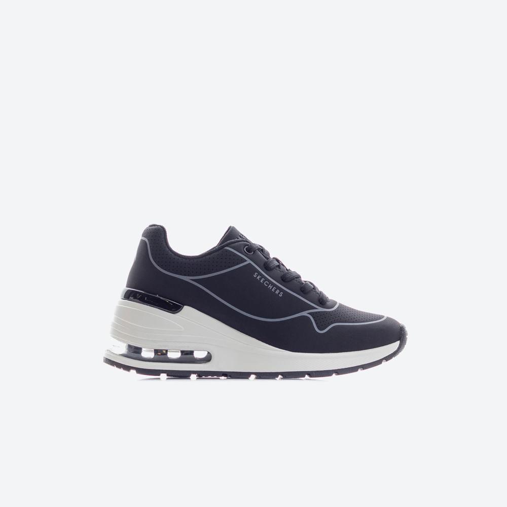Eleva tu estilo con comodidad aireada con las Skechers Street Million Air - Higher Lifted. Este moderno modelo de zapatilla con cordones cuenta con una parte superior de durabuck con clip en el talón, una plantilla acolchada Skechers Air-Cooled Memory Foam y una media suela con visible Skech-Air que proporciona amortiguación. La parte superior con durabuck estampado le da un toque de moda, mientras que la suela flexible con tracción asegura estabilidad en cada paso. Con una altura de suela de aproximadamente 6.35 cm, estas zapatillas combinan estilo y confort en un diseño versátil para tu día a día.