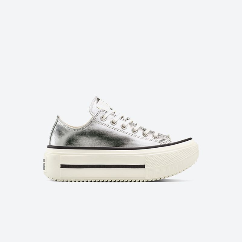 Estas plataformas reinterpretan el estilo clásico de Converse con una altura doble que aporta presencia y un aire noventero. Su acabado plateado metálico transforma el diseño tradicional en una pieza llamativa, pensada para resaltar en looks urbanos y casuales. El empeine sintético mantiene la estructura ligera y fácil de limpiar, mientras la amortiguación EVA ofrece una pisada más suave para el uso diario. La suela vulcanizada de goma asegura buena tracción y refuerza el carácter icónico, acompañado de la puntera clásica y la etiqueta All Star en la lengüeta. Cuidados: evita lavadora y productos abrasivos. Retira suciedad con un paño ligeramente húmedo y seca al aire. No sumergir en agua ni exponer a calor directo.