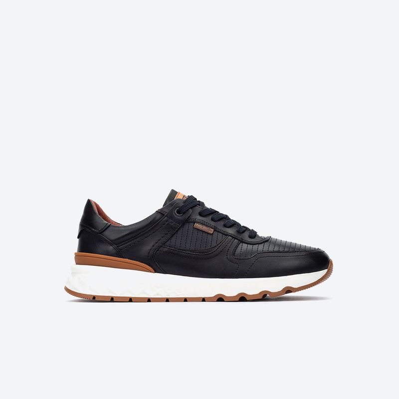 Diseñados para quienes no se detienen, los Aranda de Pikolinos son deportivos masculinos que combinan ligereza, comodidad y diseño funcional. Su exterior en piel vacuno de alta calidad proporciona un look refinado, mientras que el forro textil y la plantilla extraíble con tecnología Memory Foam se adaptan al pie para brindar amortiguación y soporte en cada paso. La suela sintética ultraligera de 3,5 cm facilita la movilidad, haciendo que caminar largas distancias sea más fácil y cómodo. El cierre con cordones permite un ajuste seguro y personalizado. Son perfectos para recorridos urbanos, jornadas activas o looks informales. Además, su fabricación responsable con piel certificada por Leather Working Group refuerza el compromiso con el medioambiente. Para conservarlos, se recomienda limpiar con un paño suave y evitar la humedad directa.
