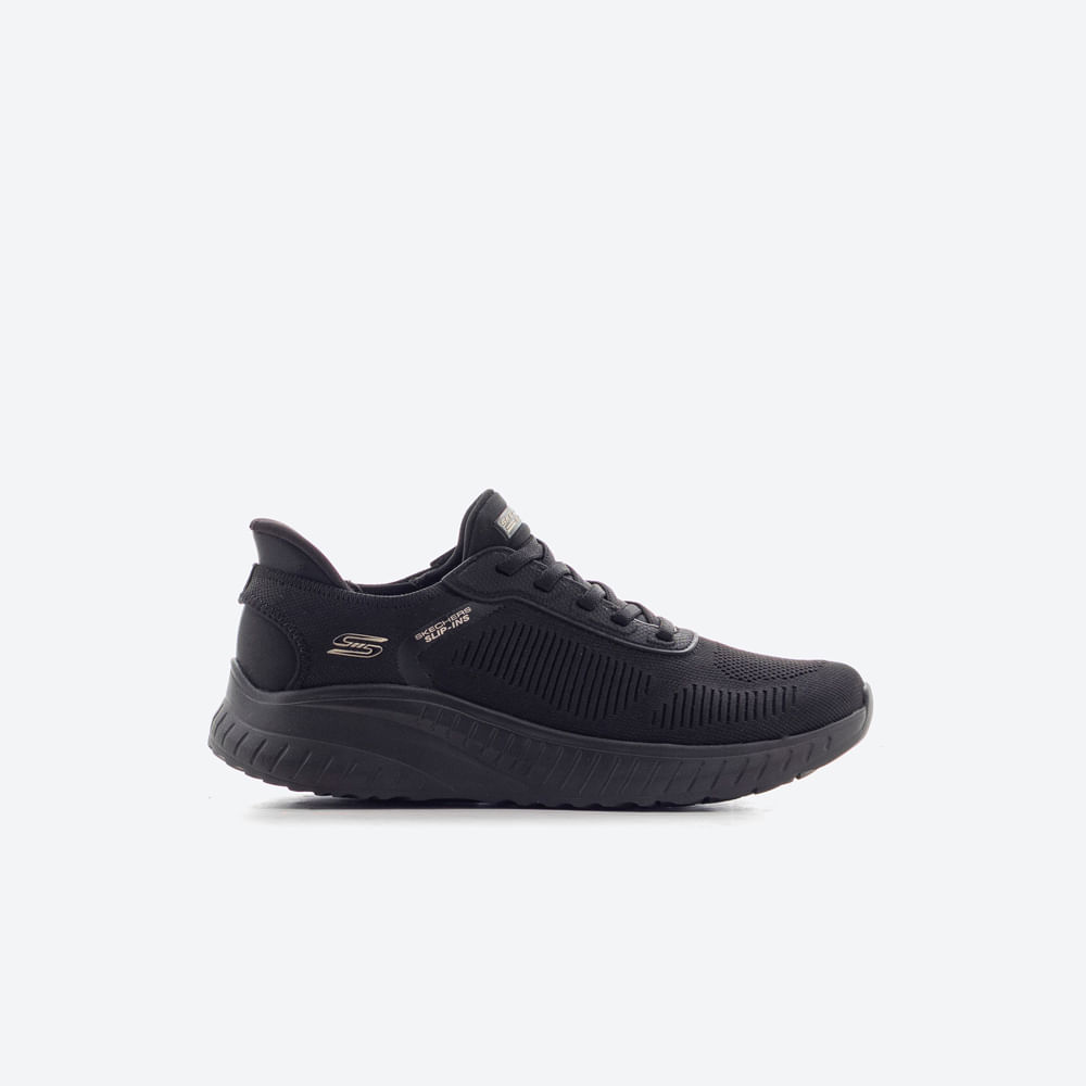 Zapatillas deportivas veganas Skechers BOBS Sport Squad Chaos con diseño Slip-ins para calce sin manos. Incorporan talonera Heel Pillow que mantiene el pie en su lugar, capellada tejida con cordones elásticos y plantilla Skechers Memory Foam para mayor confort. Su entresuela absorbe impactos y la suela ofrece buena tracción. Altura del tacón: 3,2 cm. Limpiar con un paño húmedo y evitar lavar a máquina.