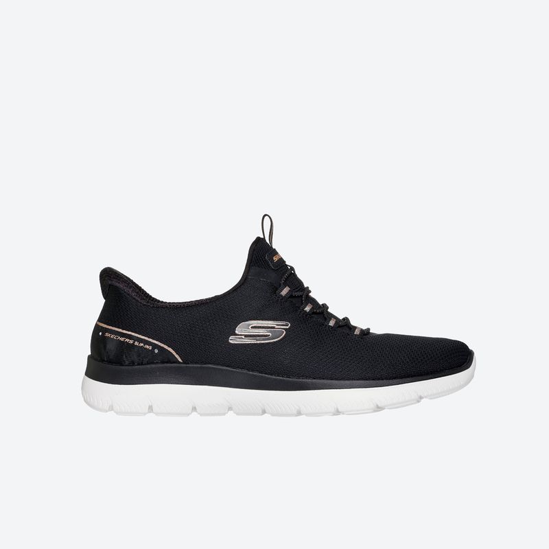 Los Skechers Summits para mujer están diseñados para ofrecer practicidad y ligereza en el día a día. Su sistema slip-on permite un calce rápido y sin esfuerzo, ideal para rutinas dinámicas, mientras que la capellada en malla transpirable favorece la ventilación y mantiene el pie fresco durante más tiempo. Incorporan cordones elásticos fijos que brindan un ajuste cómodo, junto con una suela flexible con tracción que aporta estabilidad al caminar. La plantilla Air-Cooled Memory Foam proporciona una pisada suave y acolchada, perfecta para largas jornadas. Además, su diseño lavable facilita el mantenimiento, permitiendo conservarlos en buen estado por más tiempo.