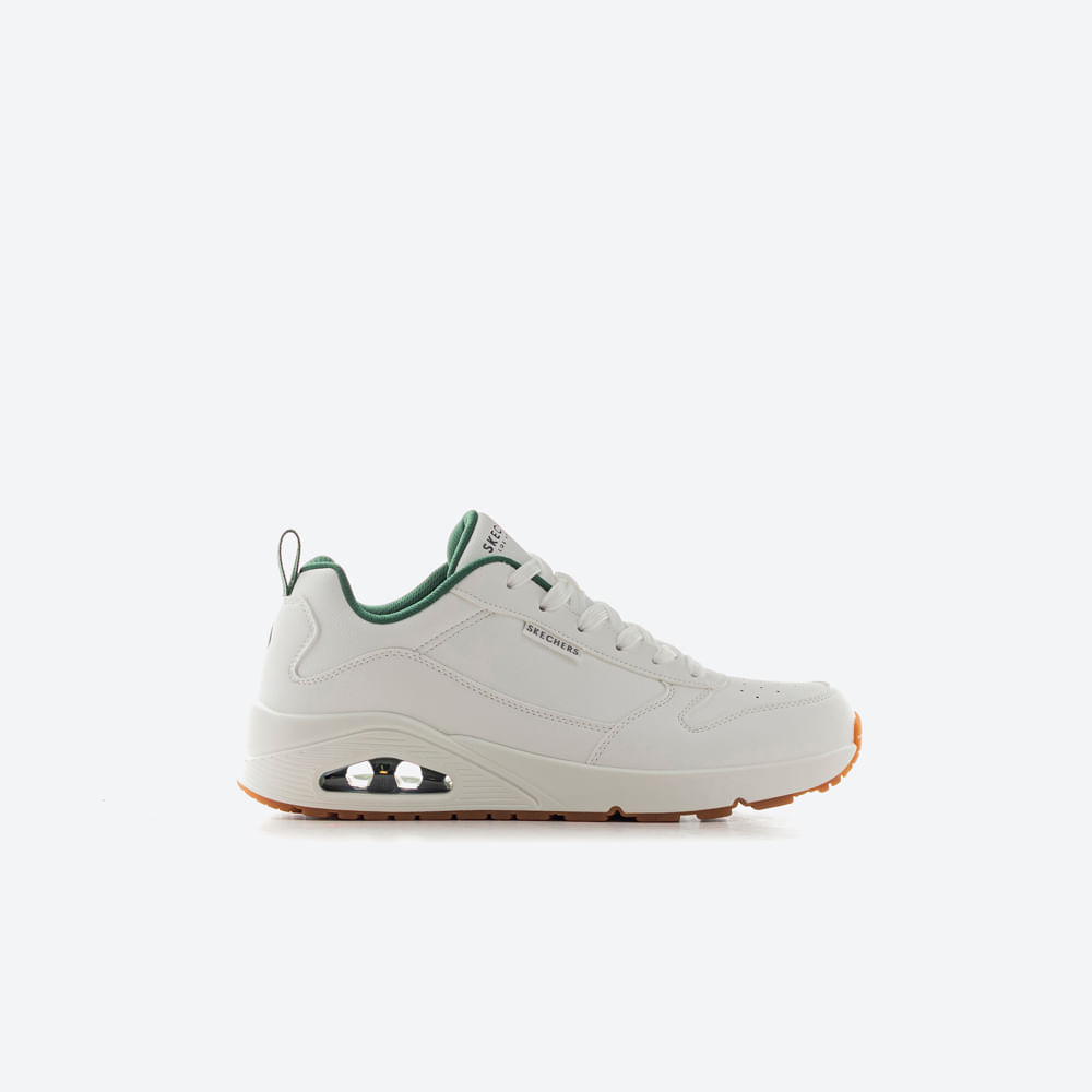 Diseñadas para un estilo urbano con máxima comodidad, estas sneakers en duraleather incorporan una plantilla Skechers Air-Cooled Memory Foam que alivia la presión y permite una pisada transpirable. La mediasuela Skech-Air con cámara de aire visible aporta una sensación ligera como caminar sobre nubes. Su suela flexible con tracción y el tacón de 3,8 cm completan el diseño. Límpialas con un paño húmedo y evita el uso de lavadora para conservar su forma y tecnología interna.