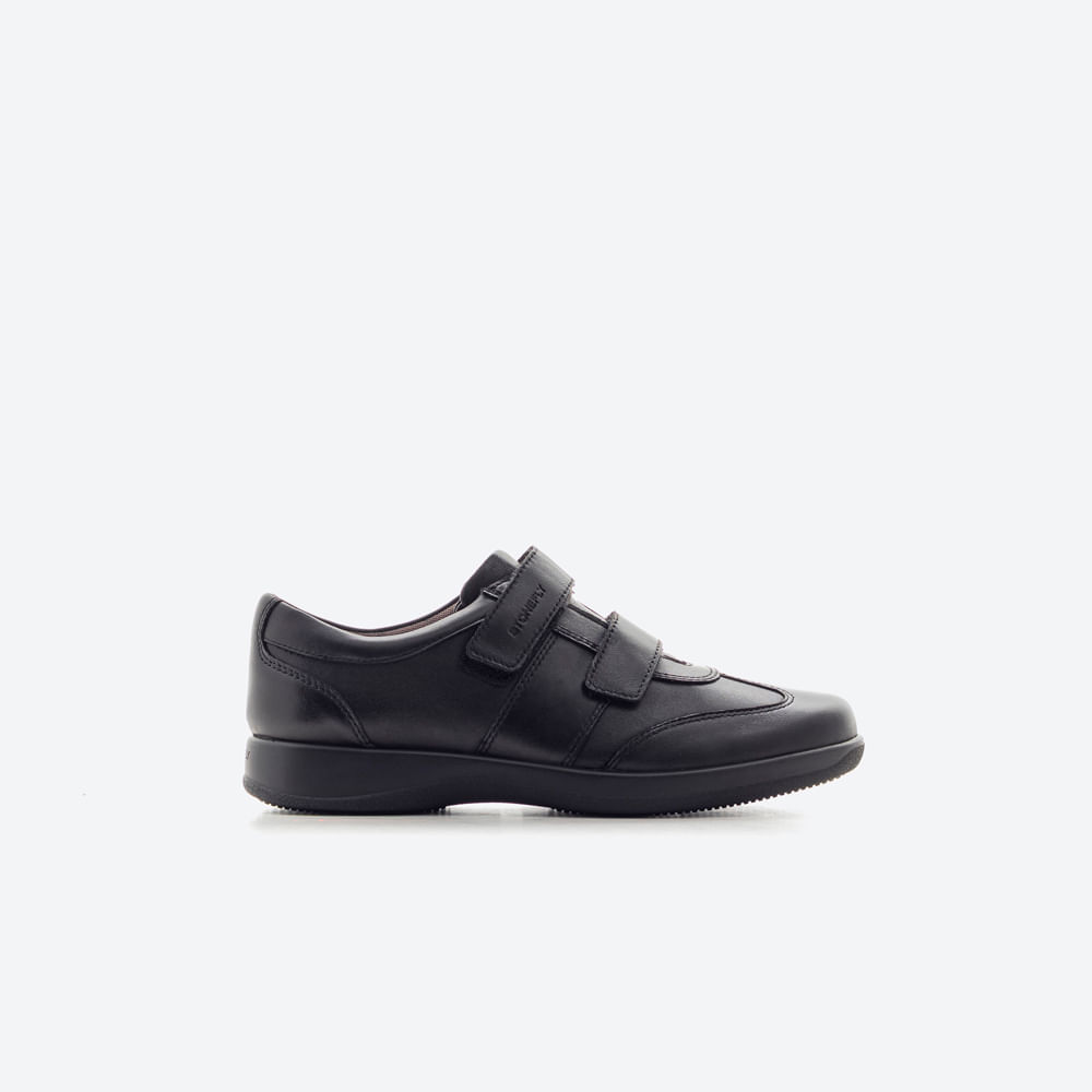 Zapato en napa negra con ajuste extra cómodo y cierre de velcro para mayor practicidad. Diseñado para facilitar cada paso con suavidad, su plantilla con tecnología Blusoft incorpora una almohadilla de gel que absorbe impactos y reduce la fatiga. La suela de PU con tacón de 3 cm ofrece ligereza y estabilidad, convirtiéndolo en una opción ideal para el uso diario. Para mantener su apariencia, limpia con un paño húmedo y productos específicos para cuero liso, evitando el contacto directo con el agua.