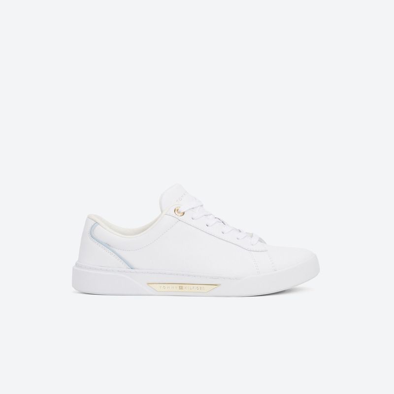 Estas zapatillas de corte bajo reinterpretan el estilo clásico del tenis con una confección en piel lisa y detalles metálicos que elevan su elegancia. Incorporan una plantilla extraíble que brinda confort en cada paso y una suela de goma que asegura tracción. El logo en bajo relieve y la insignia metálica en la entresuela destacan su identidad de marca. Para mantener su acabado, se recomienda limpiar con un paño húmedo y evitar la exposición prolongada al sol.