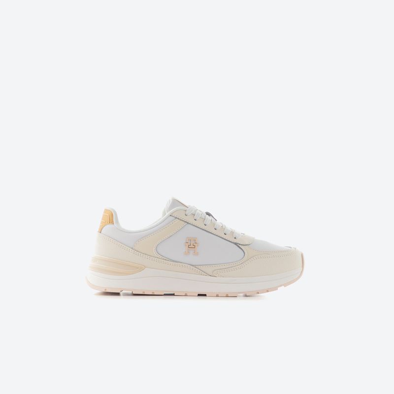 Estas zapatillas de piel con diseño color block combinan elegancia y estilo deportivo, perfectas para elevar tus looks casuales con un toque moderno. La mezcla de piel lisa y granulada se complementa con detalles metálicos en el talón y monogramas TH en la lengüeta y el lateral, que refuerzan su identidad distintiva. La suela de EVA ligera y la plantilla extraíble aseguran comodidad en cada paso, ideales para el día a día urbano.