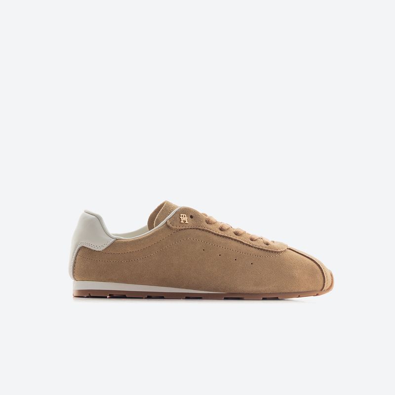 Estas zapatillas de ante con monograma TH combinan un diseño deportivo con detalles sofisticados que elevan su estilo. Su parte superior en ante de alta calidad aporta una textura suave y elegante, mientras que el panel en contraste en el talón y las perforaciones laterales añaden dinamismo y carácter al diseño. El interior con forro de poliéster elástico favorece una sensación cómoda durante el uso diario. Incorporan una plantilla extraíble elaborada con goma termoplástica reciclada, otros tejidos y poliuretano, que aporta practicidad y soporte. La suela de goma termoplástica ofrece buena estabilidad, mientras que la insignia metálica con el monograma TH en la cordonera y los detalles distintivos de Tommy Hilfiger completan una silueta moderna y versátil. El color palo de rosa presenta tonos del tono taupe.
