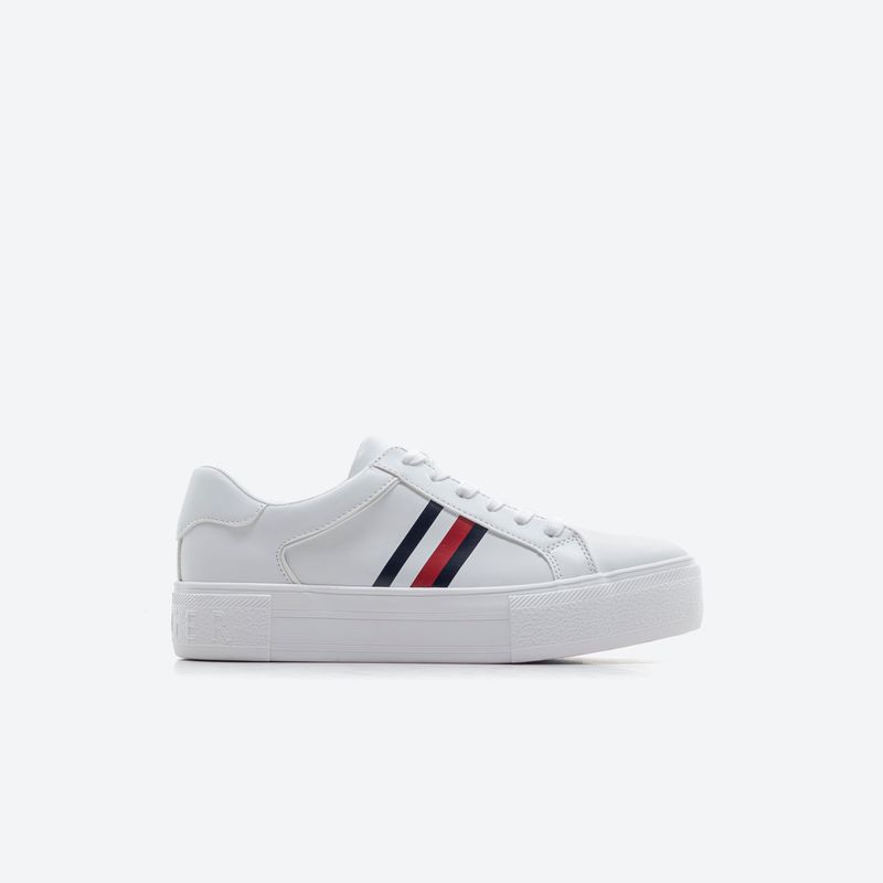 Estas zapatillas blancas destacan por su diseño fresco y moderno, con detalles en rojo y azul que añaden un toque de personalidad. Fabricadas con materiales resistentes y de alta calidad, combinan estilo y funcionalidad, ideales para tus looks urbanos. La suela gruesa proporciona soporte y comodidad durante todo el día, mientras que los detalles laterales con líneas icónicas reflejan un estilo atemporal. Perfectas para combinar con jeans, faldas o shorts, estas zapatillas se convertirán en un básico de tu armario.