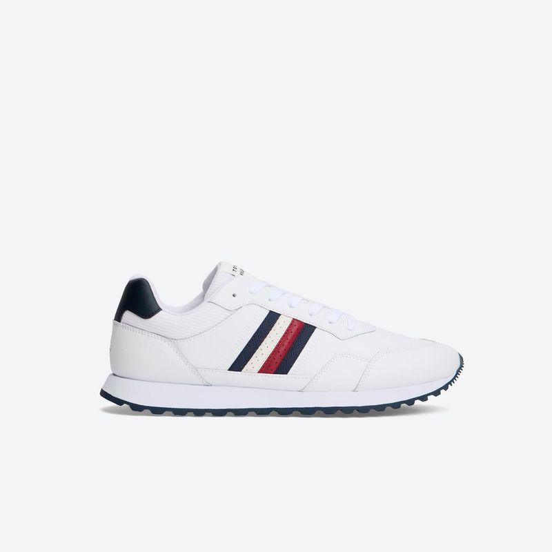 Estas zapatillas combinan un diseño deportivo con detalles distintivos que aportan carácter al look urbano. Su parte superior en mezcla de piel y poliuretano incorpora paneles con diferentes texturas y perforaciones de ventilación que favorecen la transpirabilidad y realzan la estética dinámica del modelo. Incorporan forro de poliéster y una plantilla extraíble elaborada con goma termoplástica reciclada, otros tejidos y poliuretano, pensada para aportar comodidad durante el uso diario. La suela de goma con tacos ofrece mayor tracción y estabilidad, mientras que la cinta distintiva en el exterior y el logo engomado de Tommy Hilfiger en el talón completan el diseño con el sello característico de la marca.