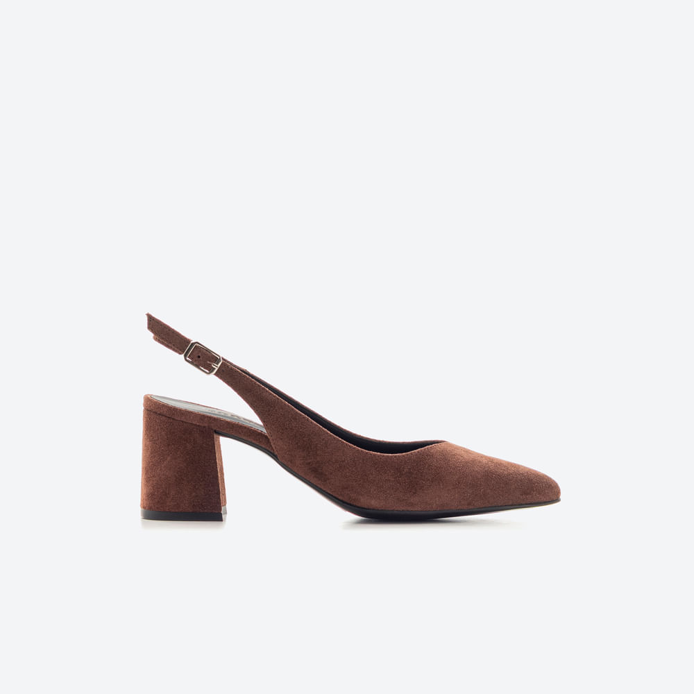 Este modelo con tacón medio de 5 cm combina altura y comodidad, ideal para acompañar la jornada sin esfuerzo. Su diseño con punta afilada crea una silueta elegante, mientras que la suela flexible se adapta al movimiento natural del pie. El formato slingback con correa ajustable ofrece ligereza, frescura y un ajuste seguro. El tacón estructurado aporta estabilidad, permitiendo un uso prolongado sin molestias. Disponible en charol negro para un look sofisticado, en metalizado plomo para un aire moderno y en gamuza marrón para un estilo versátil y funcional. Perfecto para ir del trabajo a una salida nocturna con naturalidad.