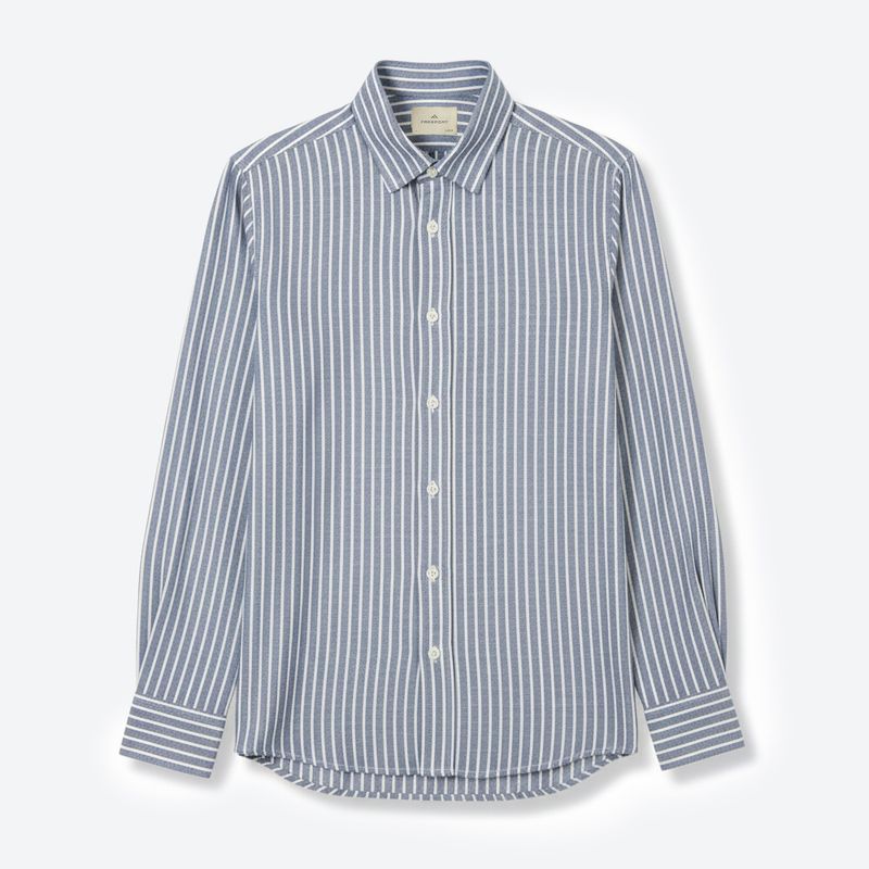Confeccionada en una mezcla premium de lino y algodón, esta camisa de rayas verticales ofrece frescura natural, suavidad y una caída ligera gracias a su acabado mercerizado. El cuello button-down con anclaje oculto mantiene una estructura impecable durante todo el día, aportando un toque elevado sin perder naturalidad. Su silueta Custom Fit equilibra comodidad y estilo, ideal para un look pulido pero relajado. Los detalles cuidados -presillas de refuerzo, costuras limpias y botones sostenibles libres de metales pesados - refuerzan su calidad. Para conservar su textura y color, se recomienda lavar a 40C, secar a la sombra y planchar a temperatura media.