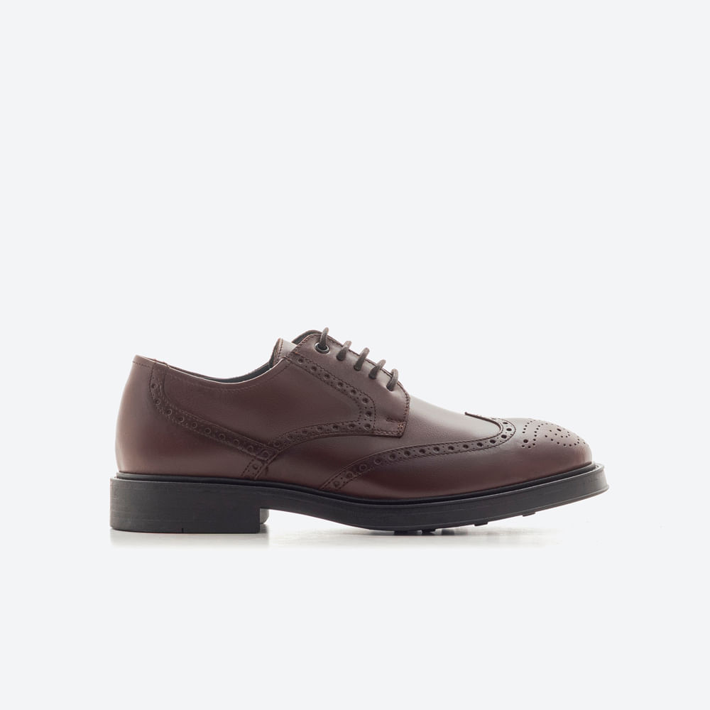 Estos zapatos de cuero marrón con detalles brogue fusionan la tradición artesanal con un estilo sofisticado. Elaborados en piel lisa de alta calidad, ofrecen resistencia, fácil mantenimiento y un aspecto impecable. El diseño con cordones asegura un ajuste firme, mientras que la suela antideslizante proporciona estabilidad y comodidad incluso en jornadas prolongadas. Su tono marrón oscuro aporta versatilidad para combinarlos con trajes formales o conjuntos smart casual, convirtiéndolos en un básico atemporal que eleva cualquier look de día o de noche.